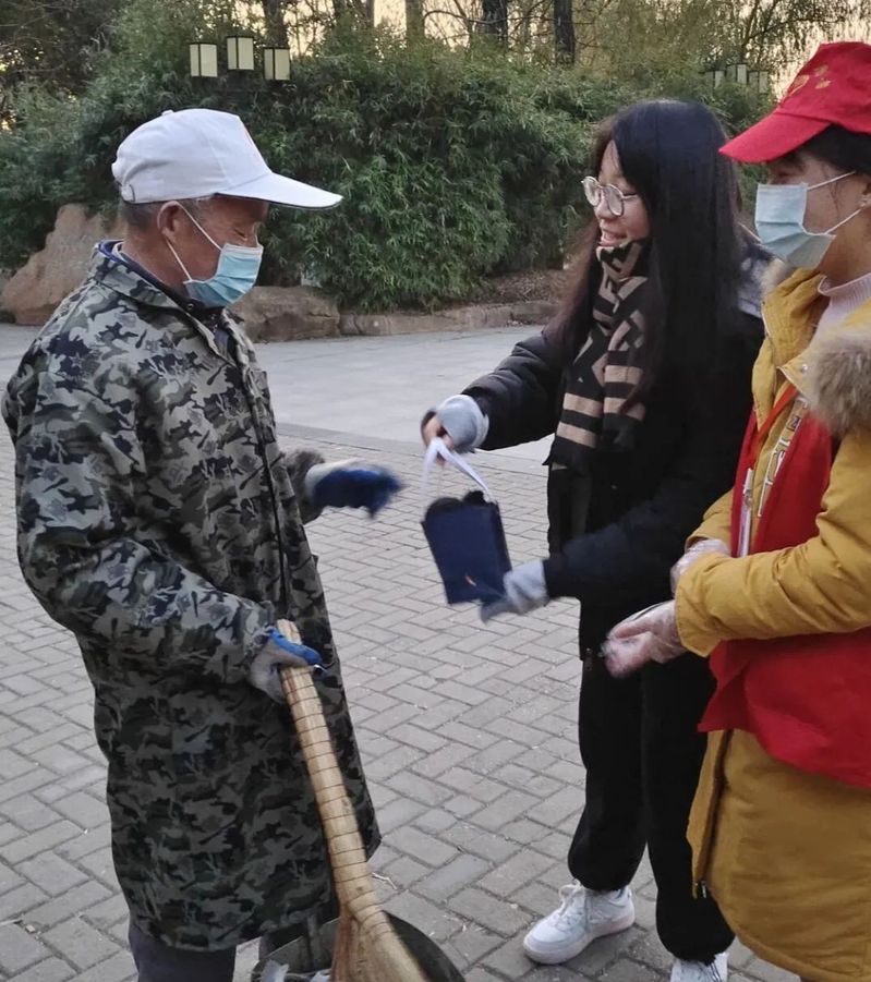 为了给环卫工人送去诚心的慰问和感谢,表达我们的感激之情, 2021年12月19日,pg电子官方网站经外分团委青年志愿者协会展开“暖冬活动”,为早起的环卫工人送上爱心礼包,让他们在这凛冽寒冬当中感受到温暖。