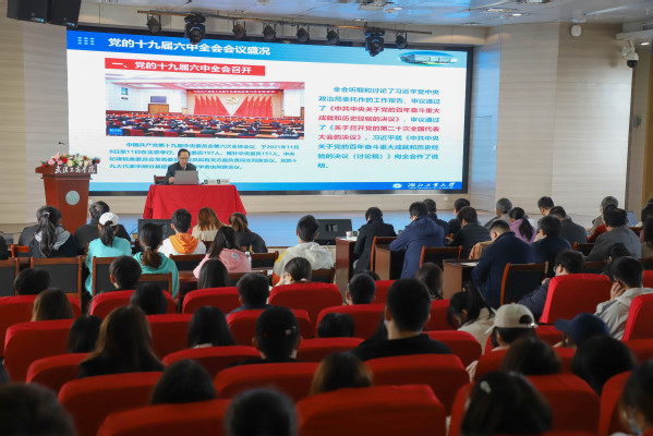 讲座结束后,刘生元书记对学习贯彻全会精神提出三点要求:一是学校的党员领导干部带头学深悟透,深刻领会和把握其重大意义、核心内涵,将学习成果转化为强大动力,狠抓落实,努力推动学校建设开创新局面;二是广大教师要积极以学促行,将全会精神的贯彻落实有机融入教育教学,引导广大学生入脑入心、走深走实;三是同学们要深刻领会党百年奋斗的重大成就和历史经验,赓续红色血脉、树立远大理想,自觉肩负起中华民族伟大复兴的历史责任和时代使命。