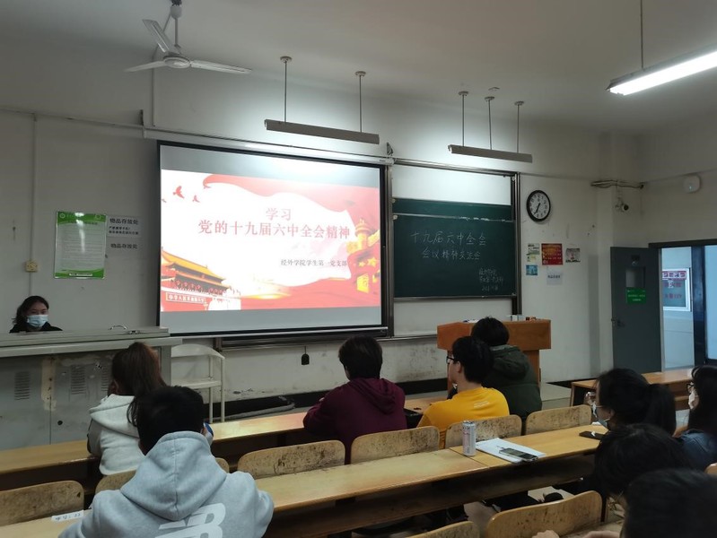 2021年11月18日,中共pg电子官方网站经济与商务外语学院学生第一党支部召开会议,传达学习2021年11月8日至11日在北京召开的中国共产党第十九届中央委员会第六次全体会议。