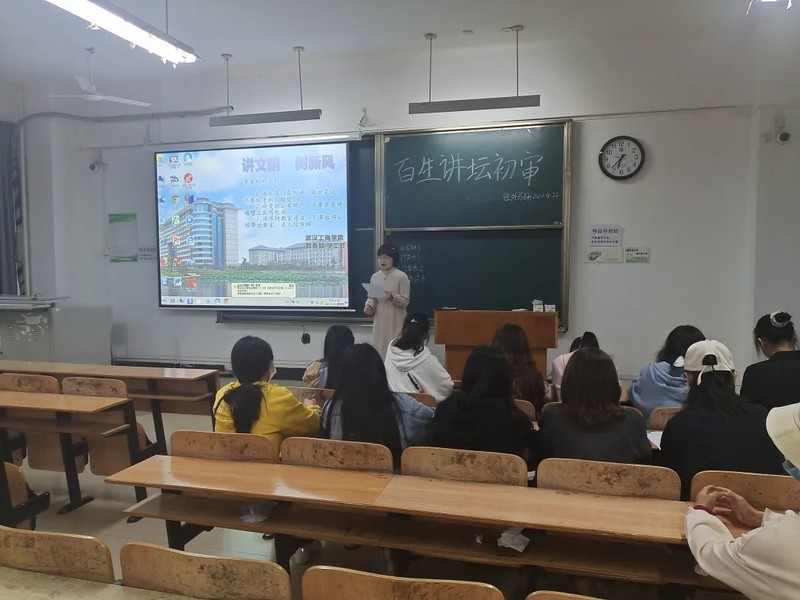 同时为贯彻落实习近平总书记在党史学习教育动员大会上的重要讲话和指示精神,以庆祝中国共产党成立100周年为重大契机,继续通过“进支部、进社团、进网络、进团课”,引导帮助团学干部和团员学生增强“四个意识”、坚定“四个自信”、做到“两个维护”,我院举行了“百生讲坛”活动。于4月22号在综合楼405举行了百生讲坛活动初赛。