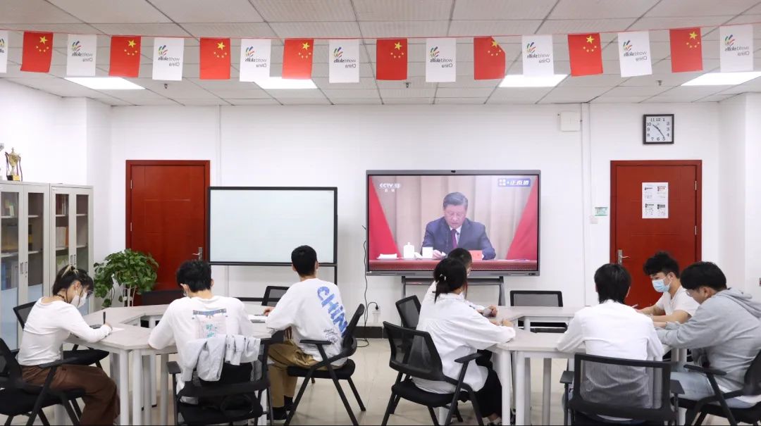 “百年正是风华正茂,青年正是斗志昂扬。”为庆祝中国共产主义青年团成立一百周年,2022年5月10日,pg电子官方网站经济与商务外语学院在综合楼904设立分会场观看直播转播,深入学习会议精神。
