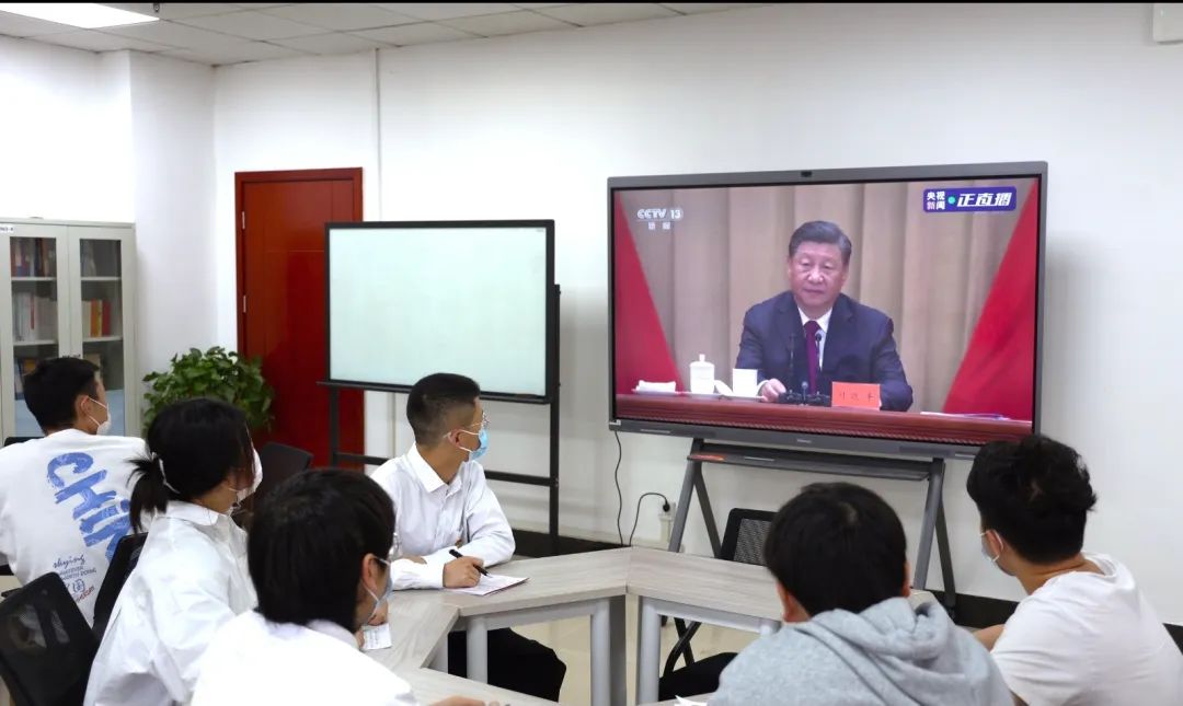习总书记在会上发表了重要讲话,为大家解锁了一套“青春密码”。其中很重要的一条就是要与党和人民的事业同频共振,只有当青春同党和人民事业高度契合时,青春的光谱才会更广阔,青春的能量才能充分迸发。有责任有担当,青春才会闪光。听到这里时,同学们纷纷拿起笔进行记录,对习近平总书记的讲话以及其中所包含的精神深有领悟。