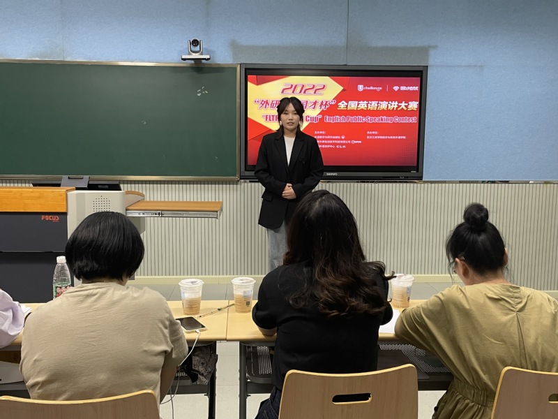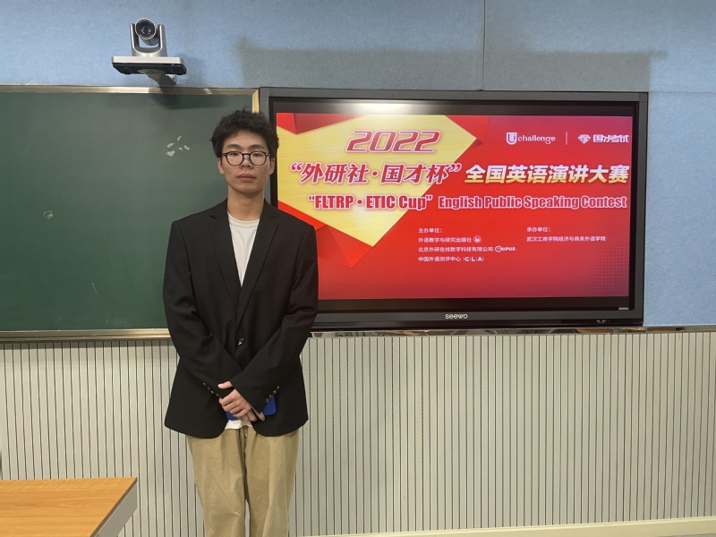 本次大赛由指导团队教师马金晶负责组织,整个比赛分为两个阶段:线上初赛和线下决赛。线上初赛由参赛选手按照官网要求线上自行提交参赛讲稿和视频,由评委综合考虑打分,依据成绩排名共有16名选手进入线下决赛。线下决赛由定题演讲和回答问题两部分组成,要求选手全程采用英语脱稿演讲。参赛选手经过暑期的精心准备和打磨,均在演讲现场发挥出了优异水平。他们用丰富的知识储备和流畅的英语口语给观赛者带来了一场视听盛宴。赛后,对部分选手就演讲主题进行了简短采访,他们当中或侃侃而谈,或见解独到,无不展现了当代大学生的爱国情怀和积极向上的精神风貌。比赛过程中,评委老师始终秉持公平、公正、公开的原则,最终,经过选手们激烈角逐,经外学院英语专业的齐龙飞同学荣获特等奖,将代表我校参加10月份举行的2022“外研社·国才杯”全国英语演讲大赛湖北省复赛。