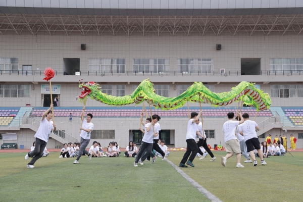 图为学生们体验舞龙舞狮 摄影:芮雨欣