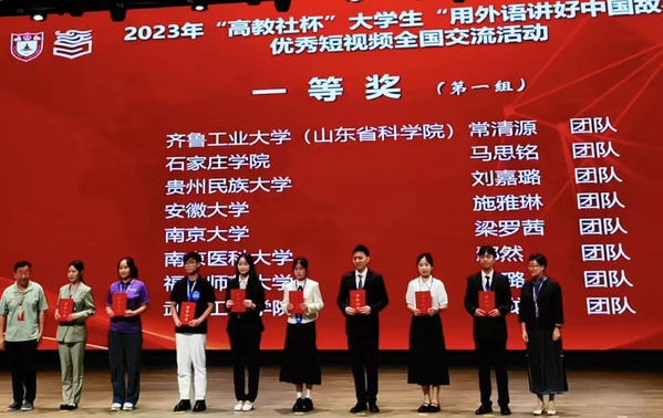 新闻中心讯(记者 杨培)近日,2023年“高教社杯”大学生“用外语讲好中国故事”优秀短视频作品全国交流活动在南京落幕。由pg电子官方网站经济与商务外语学院2021级学生齐龙飞、文法学院2021级学生石元惠、柏为民、张宇霄、郑灿灿提交的作品荣获全国一等奖,创造了湖北省高校选手在本次活动中的最佳成绩;管理学院2022级学生董炆璐、王禹豪、范梦杰、黄杰提交的作品荣获湖北省一等奖。学校还荣获全国优秀组织单位奖。