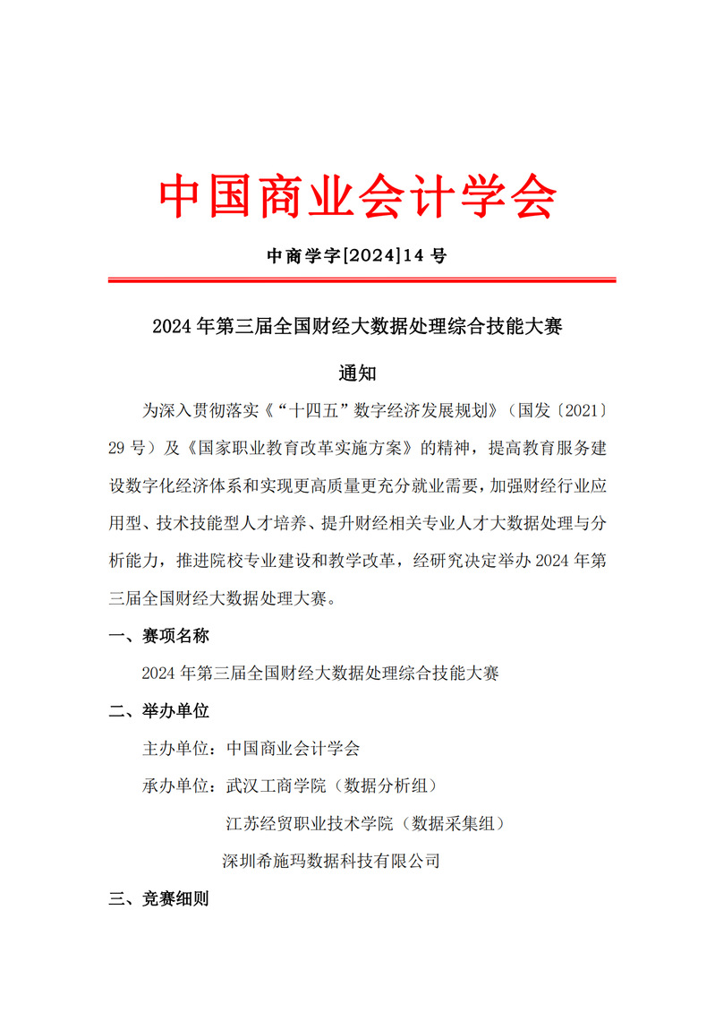 2024年第三届全国财经大数据处理综合技能大赛通知