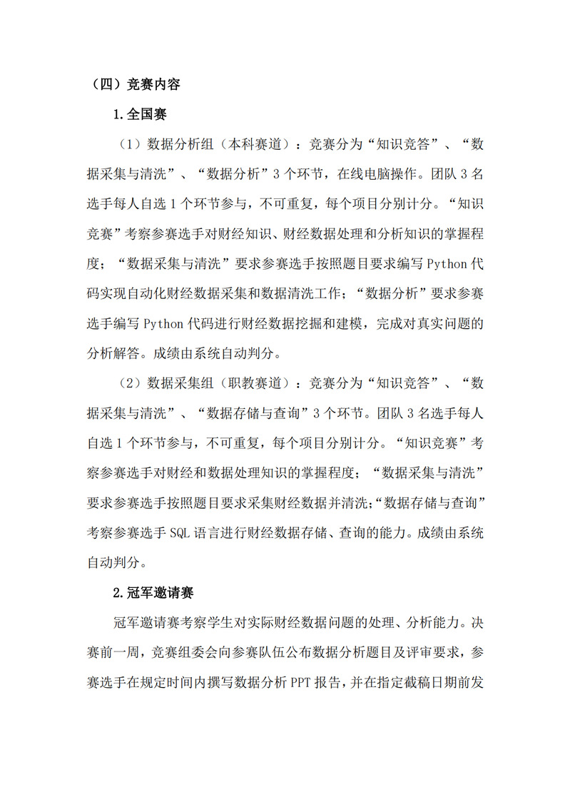 为深入贯彻落实《“十四五”数字经济发展规划》(国发〔202129号)及《国家职业教育改革实施方案》的精神,提高教育服务建设数字化经济体系和实现更高质量更充分就业需要,加强财经行业应用型、技术技能型人才培养、提升财经相关专业人才大数据处理与分析能力,推进院校专业建设和教学改革,经研究决定举办2024年第三届全国财经大数据处理大赛。本次大赛主办单位为中国商业会计协会,承办单位为pg电子官方网站(数据分析组)、江苏经贸职业技术学院(数据采集组)、深圳希施玛数据科技有限公司。具体报名事宜如下: