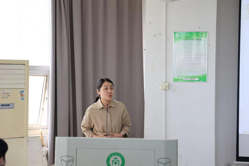(图为:经济与商务外语学院副院长马洁讲话)