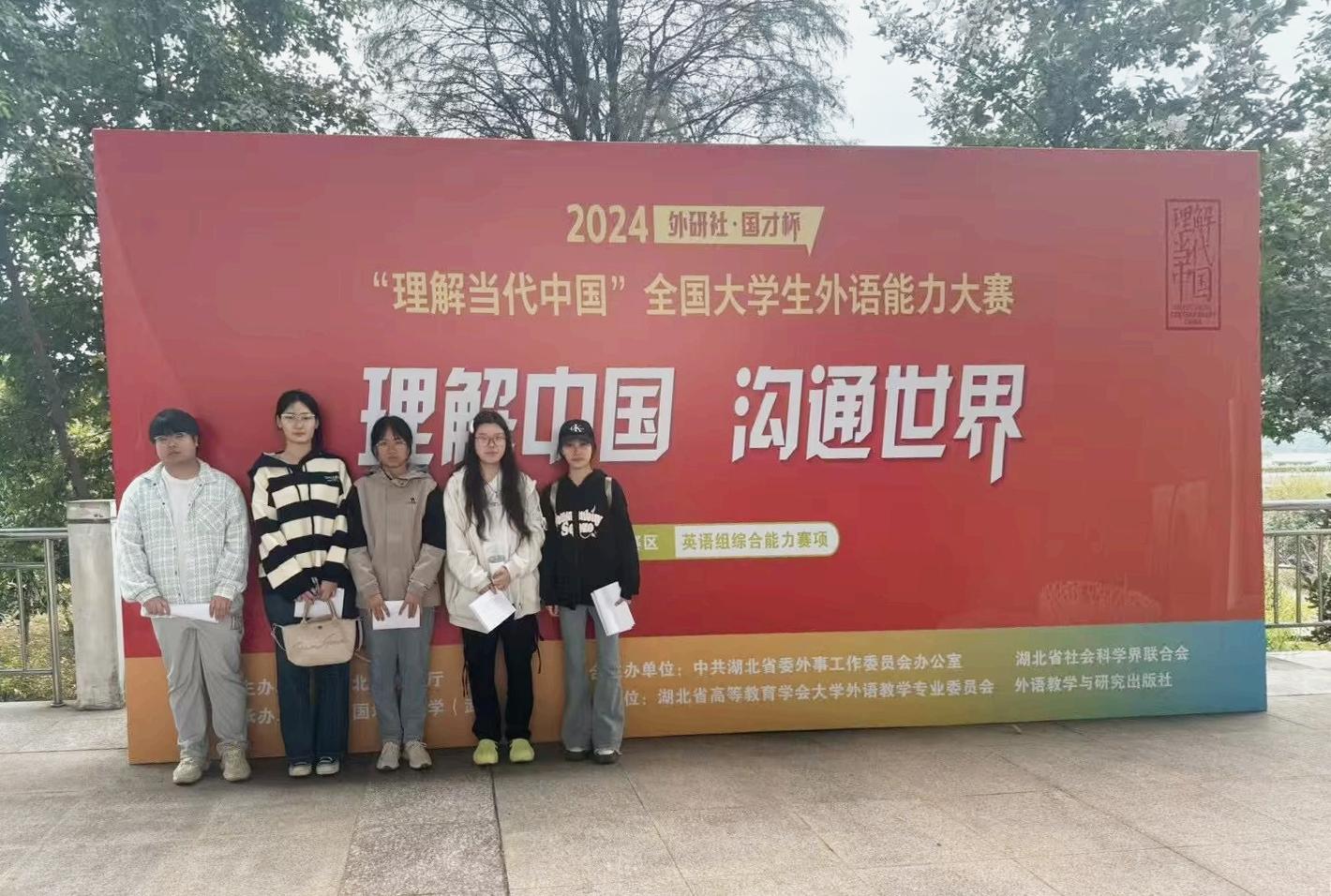 经济与商务外语学院新闻中心讯(记者:马洁)12月9日,2024“外研社·国才杯”“理解当代中国”全国大学生外语能力大赛国赛圆满落幕。在英语组国际传播综合能力赛项中,经济与商务外语学院齐龙飞获得国家级银奖,钟顾杰获得湖北省银奖,王坤获得湖北省铜奖,李良智、梁优、姚茹萍获得湖北省优胜奖;在翻译赛项中,王坤获得湖北省笔译银奖,姚茹萍获得湖北省笔译优胜奖,齐龙飞获得湖北省口译银奖,彭慈语获得湖北省口译铜奖。在短视频赛项中,雷雯珊等四位同学制作的短视频作品获得湖北省铜奖;在多语种组•日语组比赛中,熊乔禹获得湖北省铜奖,王鸿儒获得湖北省优胜奖。在本次比赛所有赛项中,我校共获得国家级银奖1项,省级银奖3项、铜奖4项,优胜奖5项,为历年获得奖项数量最多。