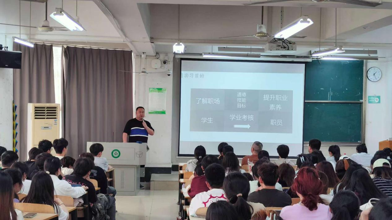 紧接着,胡航书记对实习管理所需提交的材料做出了明确的说明,提出了明确的要求,对后期需提交的各项文件资料的规范性也重点进行了强调。胡航书记要求同学们认真对待每一份文件的签署,确保信息准确无误。同时,要妥善保管好相关文件,以备后续使用。实习结束后还需要面临实习答辩的考验。实习答辩是对学生实习成果的一次全面展示,同学们要精心准备,充分展示自己在实习期间的所学所得。提交的材料要真实、完整、规范,能够体现我们的实习过程和成果。