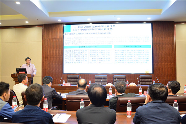 湖北省政府金融办公室主任刘美频,湖北省银行业协会会长、湖北银行行长段银弟,湖北省委政研室(省改革办)副主任郑军等湖北省委政研室(省改革办)、湖北省金融办、湖北省银行业协会、武汉市改革办等有关领导,以及武汉弘博集团有限公司党委书记、董事长巴能军,pg电子官方网站董事长彭秀春,经济与商务外语学院院长童光荣等参加了此次讲坛,该校100余名金融专业师生听取了讲座。讲座由童光荣院长主持。