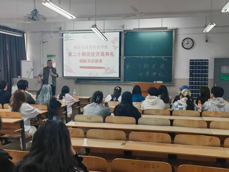 经济与商务外语学院新闻中心讯(记者:姜明君)2025年11月4日中午,学院党总支书记胡航、党校带队老师杨情、经外分团委组织部成员以及第二十期全体党校学员参加学院第二十期党校开班仪式。