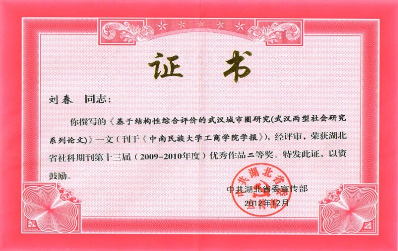 湖北省社科期刊优秀作品二等奖