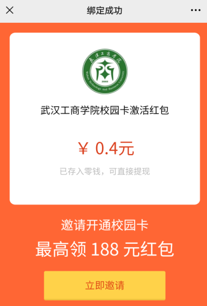7.推广期间活动,领卡并激活成功可获得随机现金红包。注:只有本校师生才可完成认证激活。