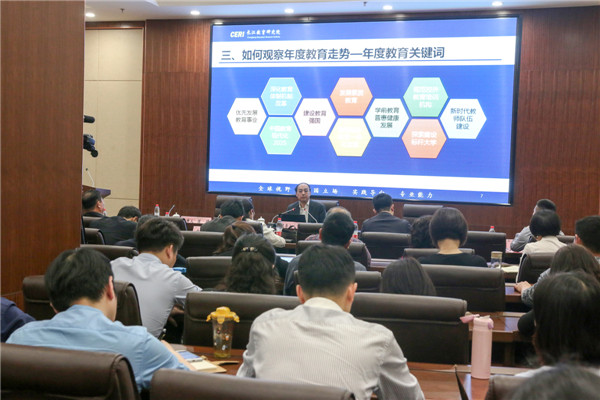 湖北教育政策研究中心主任、长江教育研究院秘书长申国昌,湖北长江教育研究院有限公司总经理、长江教育研究院执行副院长范正田,湖北第二师范学院副教授、湖北教师教育研究中心执行主任张炜,武汉工程大学教授黄艳,南京晓庄学院副教授刘大伟等专家学者,pg电子官方网站董事长彭秀春、党委书记陈伟、副校长夏再兴、校长助理左宗文、刘春,以及学校中层干部、师生代表听取了讲座。