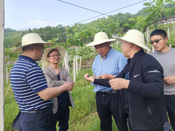 会后,左宗文一行考察了穿心店村小水果基地夏桃及猕猴桃的长势情况。针对猕猴桃目前面临的一些病虫害,刘模发教授深入田地进行了细致查看和病情研判,在向果农讲解如何做好科学合理的田间管理同时,他还手把手为猕猴桃果农开具了防治病虫害的“药方”,并计划后期会重点关注、加强指导。小水果基地田间管理负责人颜义对刘模发教授的悉心指导连连道谢,称赞刘模发教授:“来得及时、教得到位”。此外,为助力穿心店村文化建设,pg电子官方网站艺术与设计学院罗筱芳书记、周全主任还对穿心店村拟打造的两处文化墙的墙体进行了实地考察和测量,并对后期的工作计划进行了探讨和安排。