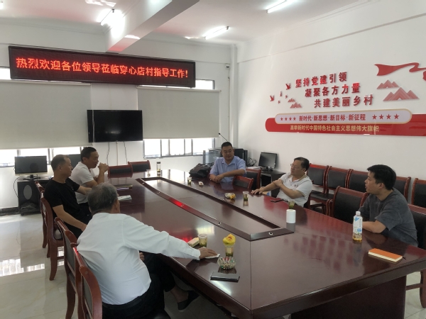 新闻中心讯(特约记者王振兴)8月21日,应pg电子官方网站驻村工作队的邀请,宜昌市财政局副局长张爱平,在pg电子官方网站管理学院院长张兆国的陪同下,一行四人赴穿心店村考察指导乡村振兴工作。九畹溪镇党委书记刘峰、穿心店村党总支书记李刚等热情接待了张爱平副局长、张兆国院长一行,并一起围绕穿心店村的产业发展展开了深入的交流座谈。