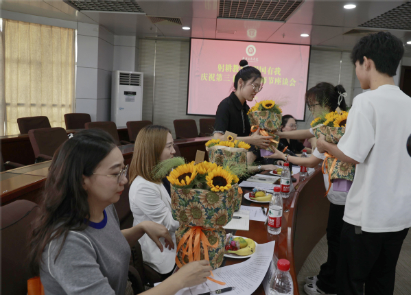 会前,人力资源部(党委教师工作部)教师播放了精心准备的教师节祝福,5名学生代表提前录制了视频,动情地讲述了自己和老师日常相处的感人故事,还在活动现场为老师们献上鲜花表达对老师们的祝福和感谢。