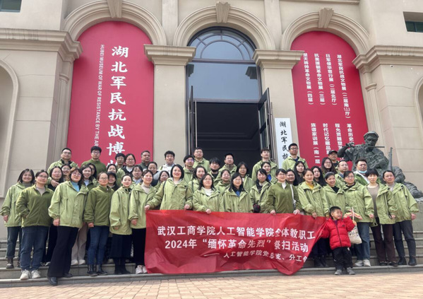 (通讯员  吴艳张静)为深入学习贯彻习近平新时代中国特色社会主义思想,深刻领悟中国共产党人精神谱系的丰富内涵和时代意义,传承红色基因,缅怀革命先烈,弘扬民族精神,由人工智能学院党总支、分工会联合组织学院全体教职工于4月3日下午前往武汉市石门峰纪念公园参观湖北军民抗战博物馆,并开展祭扫活动,向革命烈士献花祭奠,表达缅怀之情。