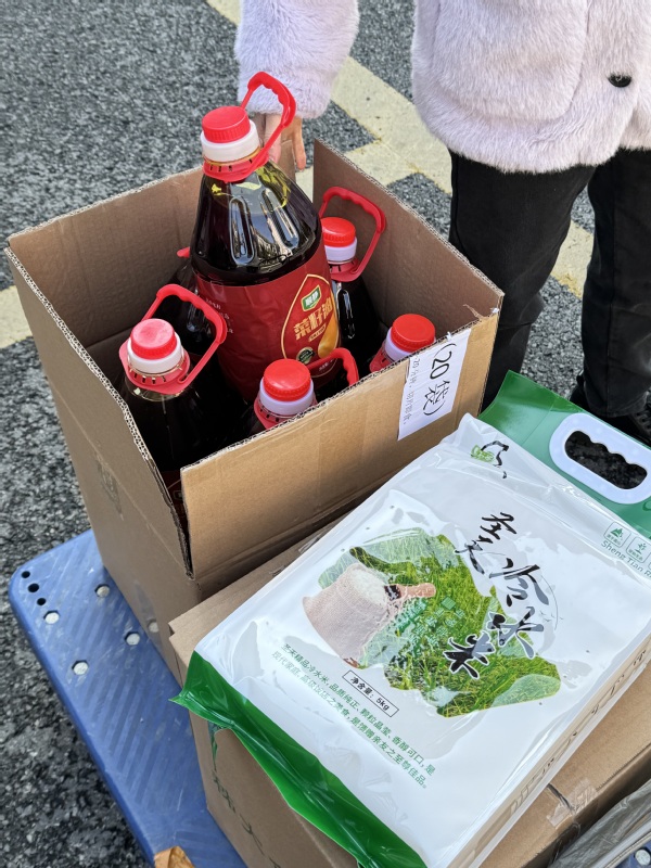 图为领取到的物资 摄影:芮雨欣