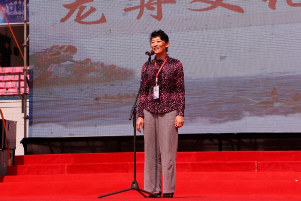 图为湖北省体育总会常务副主席林晓华宣布龙舟文化节开幕 摄影:黄娟