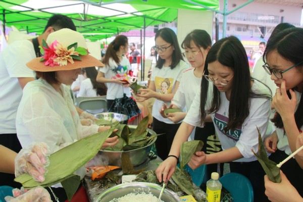 图为互动包粽子 摄影:方涵