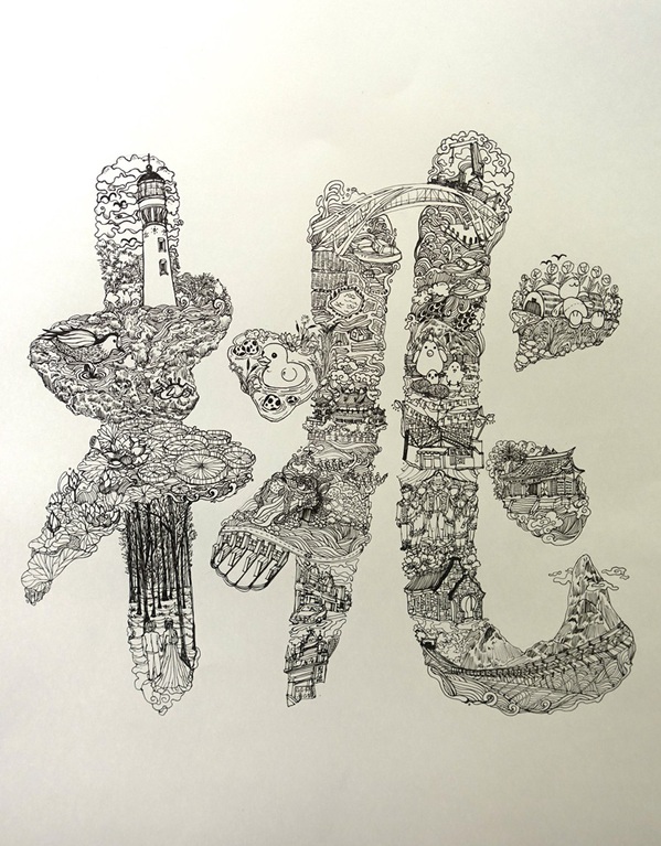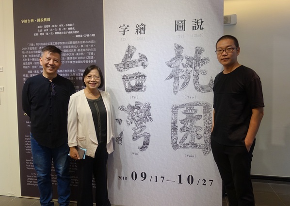此次展览的策展人、台湾中原大学艺术中心主任陈历渝教授介绍,此次展览以台湾的多元文化背景为主题,展示了台湾、桃园的独特气质和文化底蕴。《字绘台湾》从前期筹划到创作完成历时近一年时间,初衷是以汉字为纽带,两岸青年共同创作一本字景相融,兼有汉字之美、景观之妙,生动呈现美丽宝岛的图书。他认为,书上绘的是字,读者眼睛看到的是图,透过城市、名胜、小吃、俚语等,台湾得以活灵活现地呈现。