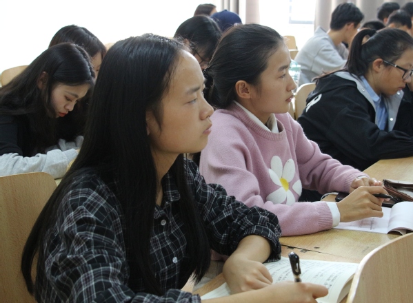 图为学生正在认真聆听做笔记 见习摄影:冯哲昊