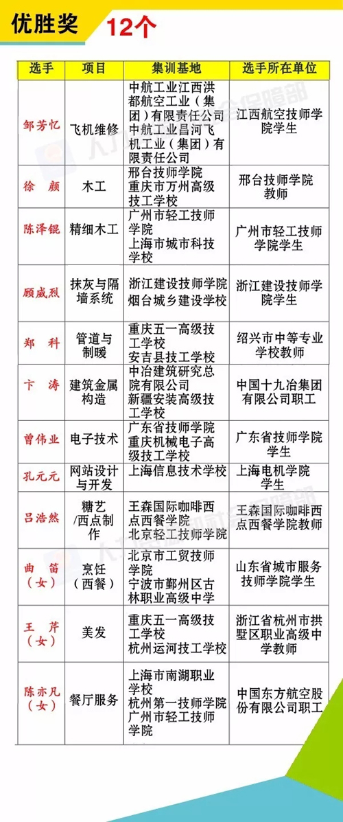 当地时间10月19日,第44届世界技能大赛在阿联酋阿布扎比落下帷幕,我国52名选手在47个项目的比赛中取得了15枚金牌、7枚银牌、8枚铜牌和12个优胜奖的优异成绩,创造了我国参赛以来的最好成绩。