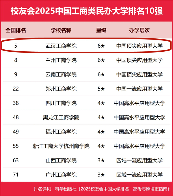 学校在中国工商类民办大学中办学实力最强、最具竞争力、办学水平最高,雄踞榜首,这也是学校连续四年位居该排行榜榜首。