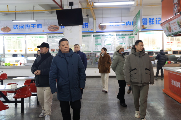 图为刘生元书记带队前往校医务室、食堂、“一站式”社区等地开展春季开学及安全工作检查 摄影:芮雨欣