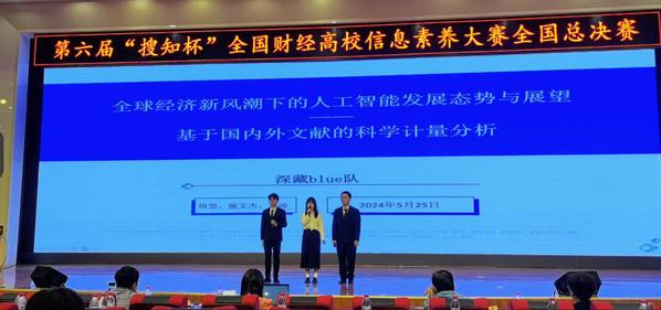 新闻中心讯(特约记者 王宇)5月25——26日,第六届“搜知杯”全国财经高校大学生信息素养大赛全国总决赛在兰州财经大学隆重举行,由pg电子官方网站图书馆图书管理员王宇典指导,艺术与设计学院学生周慧、文法学院学生袁涛、电子商务学院学生施文杰组成的“深藏blue队”荣获全国总决赛本科生组“优秀奖”,图书管理员王宇典荣获“最佳指导教师奖”,学校图书馆荣获“组织奖”。