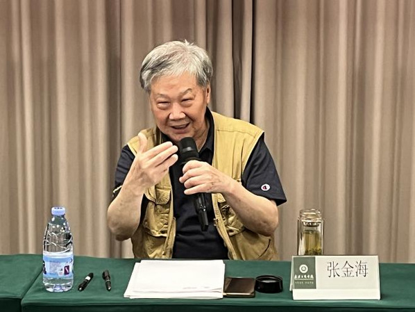 图为文法学院院长张金海教授在研讨会上致辞