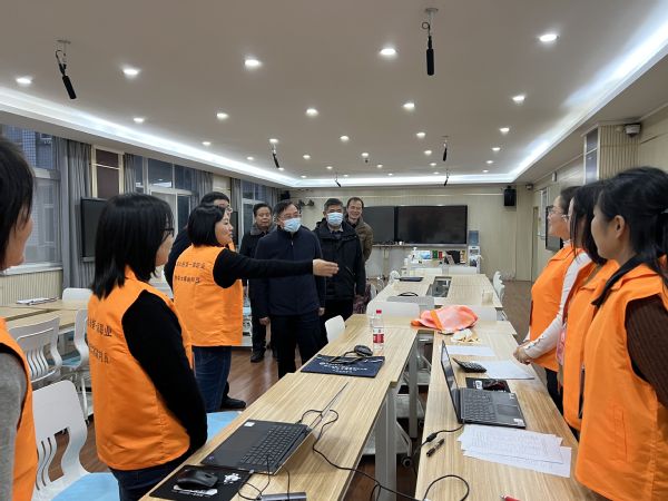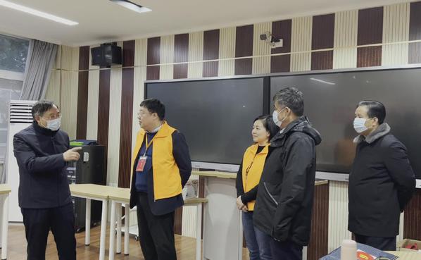 图为张晓骏院长向董长麒副厅长、曾九洲副主任介绍比赛相关情况