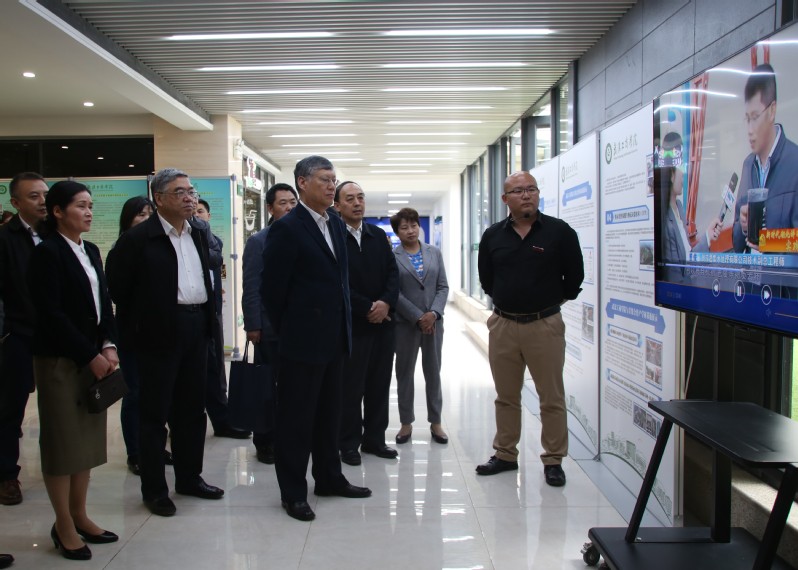 学校在服务地方经济发展方面进行了卓有成效的实践,取得显著成果。刘新成听取了学校环生学院刘鲁建教授、同时也是湖北君集水处理公司的技术骨干关于校企深度合作的成果介绍,校企共研的“粉末活性炭膜生物反应器+大孔树脂脱氮”技术被中国工程院水处理院士专家组鉴定为“国际领先水平”,广泛应用于国内10余个省市的50多项污水处理项目,其中浙江嵊新污水处理厂地表水Ⅳ提标改造项目规模达22.5万吨/日,获得良好社会效应和高度赞誉。