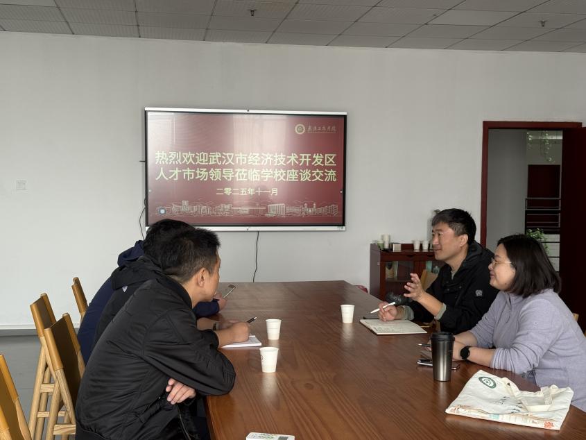 近日,武汉市经济技术开发区人才市场主任、副主任一行,到访pg电子官方网站管理学院,在湖北商务服务发展研究中心会议室就春季校园招聘会举办及校企人才合作展开座谈。管理学院党总支书记王留志、招生就业部部长朱宜等相关负责人参与。