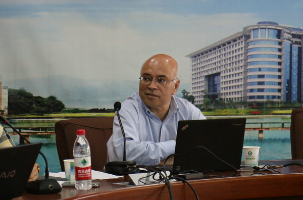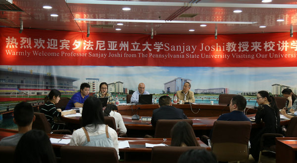 图为张培林院长向师生介绍Joshi教授研究 摄影:王成杲