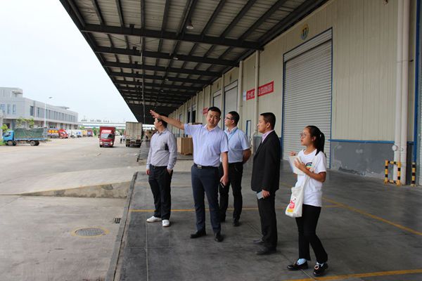 图为苏宁总经理胡潘陪同我院领导参观苏宁物流仓库 摄影:林倩