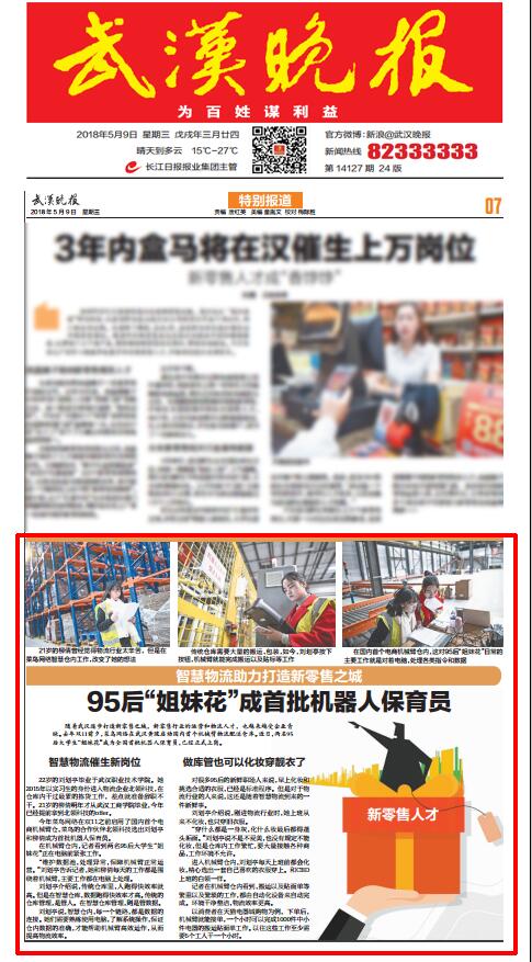 随着武汉逐步打造新零售之城,新零售行业的运营和物流人才,也越来越受企业青睐。去年双11前夕,菜鸟网络在武汉黄陂启动国内首个机械臂物流配送仓库。两名95后大学生“姐妹花”成为全国首批机器人保育员,已经正式上岗。