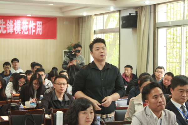 图为魏学将副教授向演讲教授提问 摄影:林倩