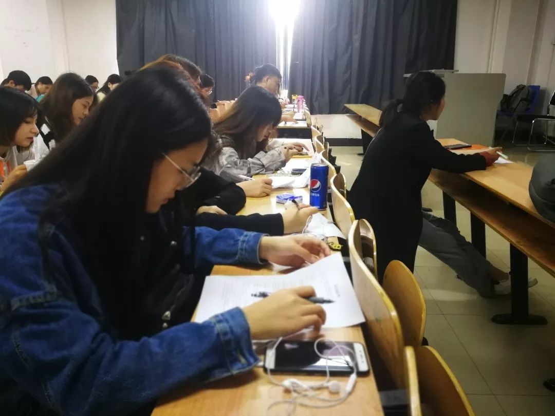 图为2017级物流学院学生在阅读实训协议