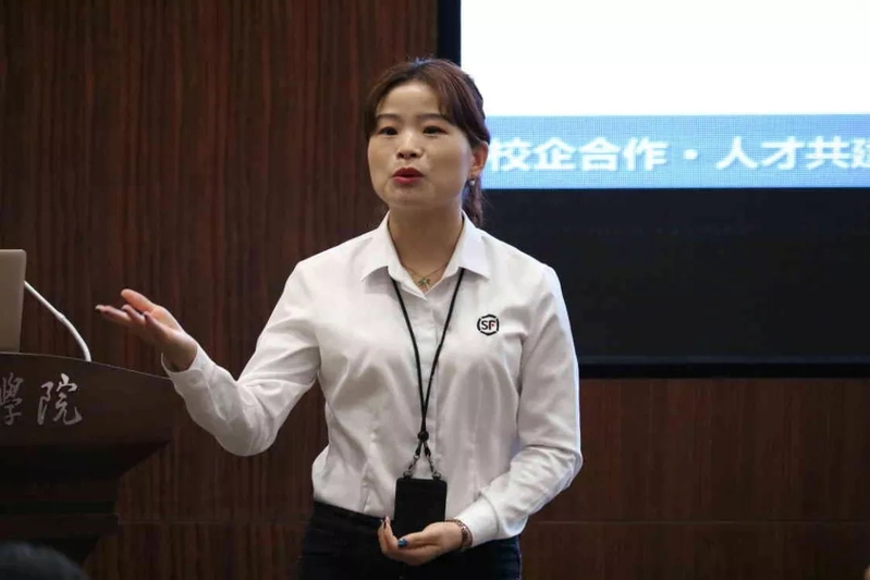 随后,顺丰人才管理蔡巧玲为学生讲述了顺丰文化、发展历程,以及2019—2020年度顺丰课程内容。并向学生强调了实习对于大学生日后发展的益处。