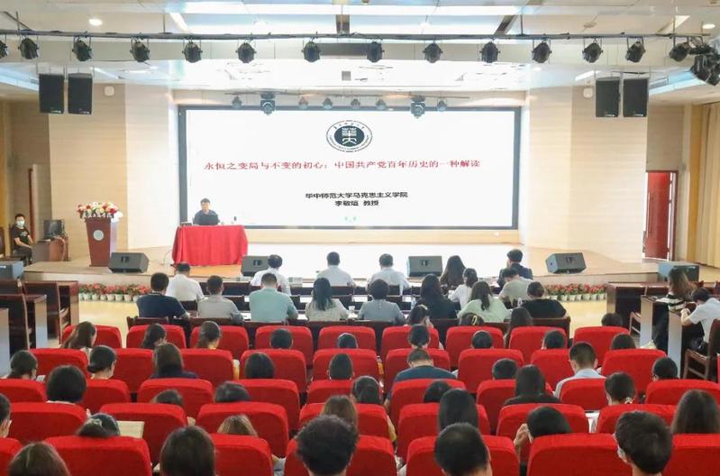 5月13日,党史学习教育省委宣讲团专家、华中师范大学马克思主义学院马克思主义中国化教研部主任李敬煊教授走进pg电子官方网站,为学校党委理论学习中心组成员、各学院及职能部门党员领导干部、思政课部教师及师生党员做了一场主题为“永恒之变局与不变的初心:中国共产党百年历史的一种解读”的专题宣讲报告。讲座由校党委书记刘生元主持,物流学院党总支书记蔡菁与16位师生党员代表共同参加了此次宣讲会。