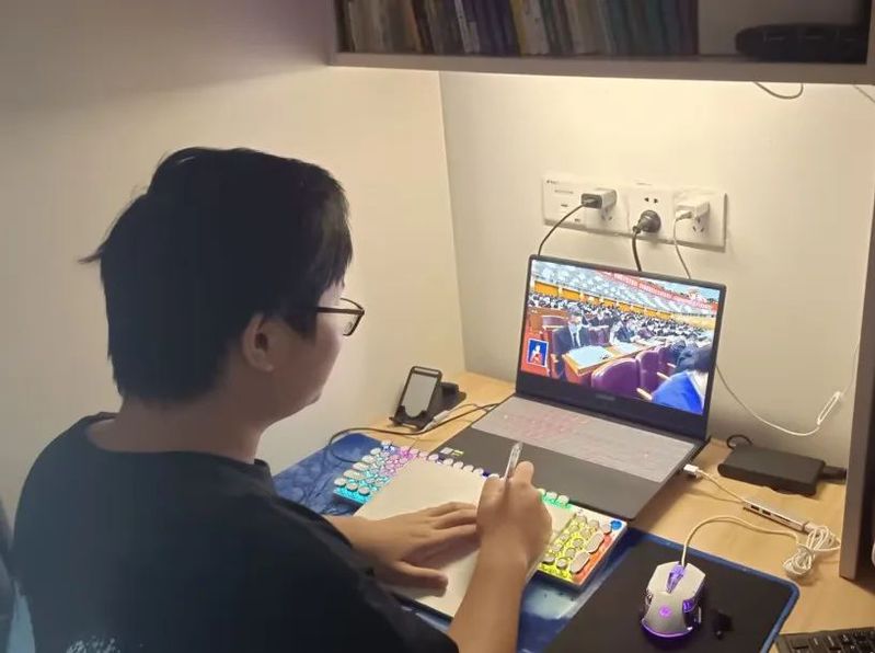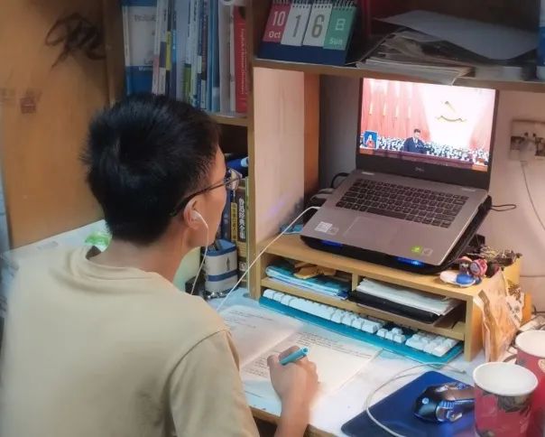 10月16日上午10时,我院学生代表共20余名在学院225会议室集中观看开幕会。入党积极分子在各自宿舍,线下同步观看直播。
