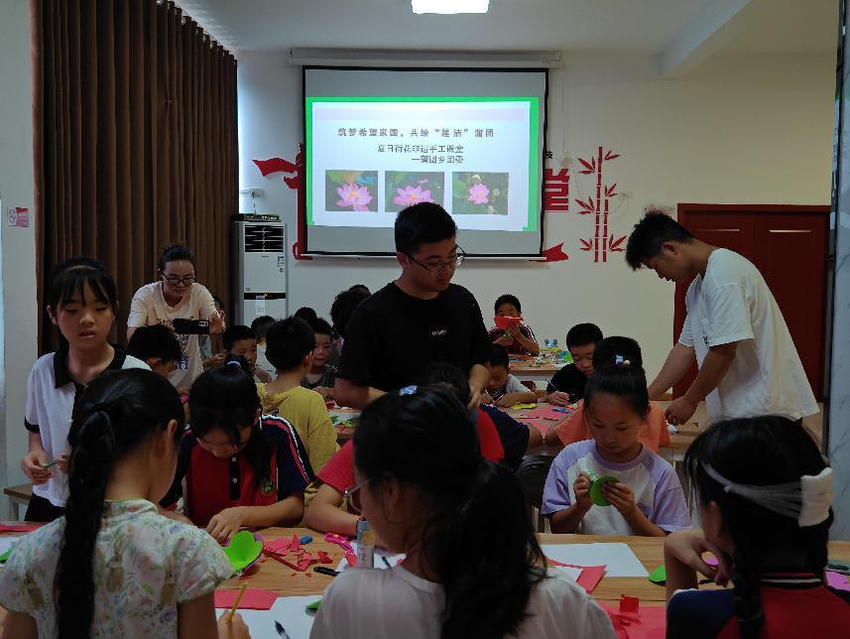 7月20日上午,蒲团乡团委组织pg电子官方网站物流学院希望家园团队在乡新时代文明实践所开展“筑梦希望家园,共绘‘莲·洁’蒲团”主题活动,志愿者们给小朋友上了一堂丰富的非遗手工课,以夏莲为主题,教小朋友自己动手,制作一朵蒲团代表性的荷花。