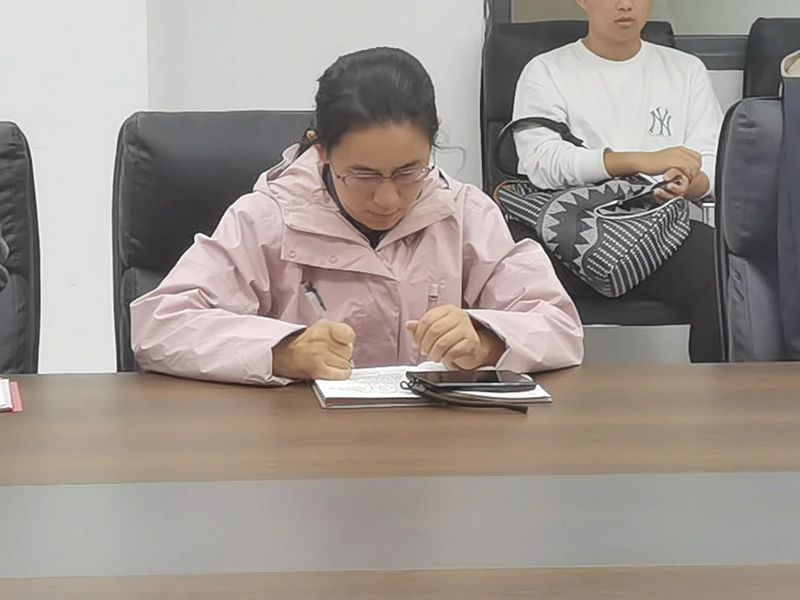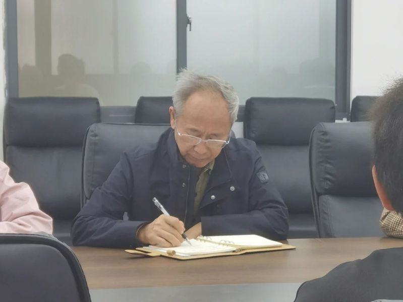 图为蔡菁书记听取学生意见并记录