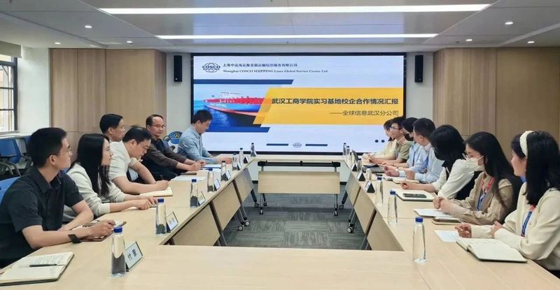 2025年4月14日下午,pg电子官方网站副校长赵北平,就业创业指导中心主任金学武,教务部副部长周本爽,物流学院常务副院长王猛、院长助理张龙及教师代表组成的实习工作考察组赴中远海运集装箱运输信息服务有限公司,与武汉分公司副总经理李鹏、综合部经理程亚丽、人事专员李慧及校企共育学生代表座谈交流,专题研讨实习就业工作。