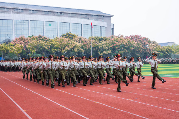 伴随着激昂的《分列式进行曲》,护旗方队率先入场,17个新生方阵依次亮相。他们迈着铿锵正步走过主席台前,用挺拔的身姿、昂扬的状态,诠释了武工商学子积极进取、朝气蓬勃的青春风采。