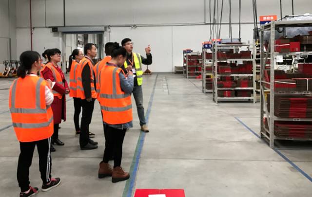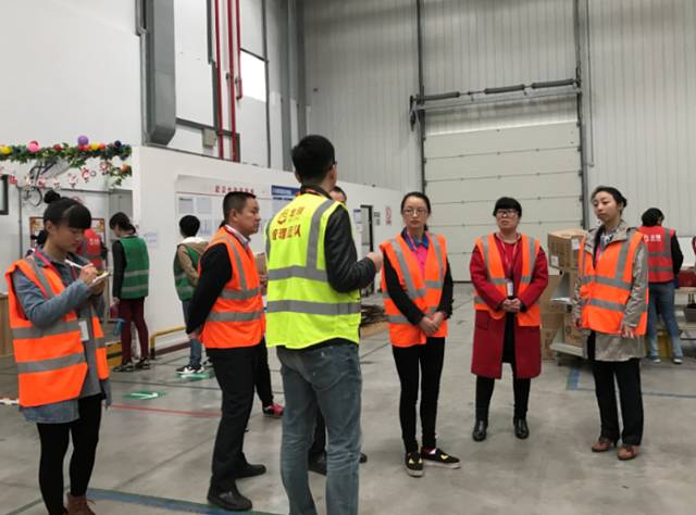 许晓龙经理首先带领物流学院的师生参观了分拣生产线和仓储设施设备,同时详细介绍了北领的企业文化、工作环境和氛围。