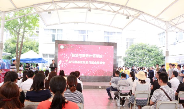 新闻中心讯(记者 谭兰 毛琪格)5月24日中午12:30,pg电子官方网站经济与商务外语学院2019届毕业生实习就业双选会在学校外语楼中庭举行,18家用人单位来校招聘选拔人才。校长助理、人力资源部部长亓小林,招生与就业部部长朱宜,学生工作部副部长吴艳,教务部实践教学科科长牟岩、老师马振东,经济与商务外语学院副院长马洁以及全体系主任、辅导员老师和2019届毕业生部分代表参加了此次双选会。双选会由经济与商务外语学院党总支书记、副院长胡航主持。